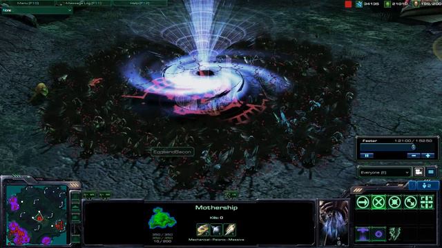 Starcraft 2 Beta Mothership Vortex / Nuke Combo vs Zergling Army