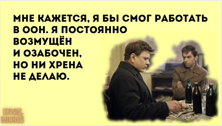 Уже по-весеннему чего-то хочется, но ещё по-зимнему лень. — Организация у нас серьёзная. Станешь одним из нас — обратной дороги нет. Выйти можно только вперёд ногами. — Офигеть! Кто же вы такие? — Пенсионеры. Одиночество — это когда ты точно знаешь, что за скотина насвинячила на кухне. Я была уверена, что некрасивых людей нет, пока не надела шапочку для бассейна. — Скажи честно: на тебя можно положиться? — Даже облокачиваться не советую. Одно дело, когда деньги не пахнут, и совсем другое — когда не пахнет деньгами. Мы не можем выглядеть хорошо обе. Либо я, либо квартира. По статистике, каждый седьмой депутат Госдумы — такой же мудак, как и предыдущие шесть. Жена ночью сказала, что ей холодно, а я сквозь сон возьми и ляпни: "На костре согреешься". Есть у кого переночевать? Одиночество — это выбор между нервной и половой системами в пользу первой. Это удивительно, как меняется твоё настроение, когда ты прошёл по мокрому в носках. Блин, так хочется побыть красавицей и ангелом... Пойду арабов разблокирую. Мне кажется, я бы смог работать в ООН. Я постоянно возмущён и озабочен, но ни хрена не делаю. Тяжело вести весь бизнес одному. Бухгалтер — ты, уборщик — ты, продавец — ты... Грузчик, который забухал и всех подставил — тоже ты. Ты замуж когда собираешься? Соседская-то дочка вон уже два года, как померла!
