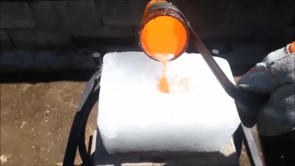 Крутой эксперимент с жидким металлом и льдом. #лёд #взрыв #металл