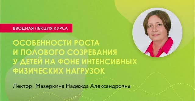 Лектор: Мазеркина Надежда Александровна — доктор медицинских наук, профессор, эндокринолог, детский эндокринолог. Отделение эндокринологии-андрологии, Клиника профессора Калинченко. Курс «Детско-юношеский спорт». Ключевые аспекты медицинского обеспечения и работы с юными спортсменами разных возрастных групп и разного уровня подготовки.