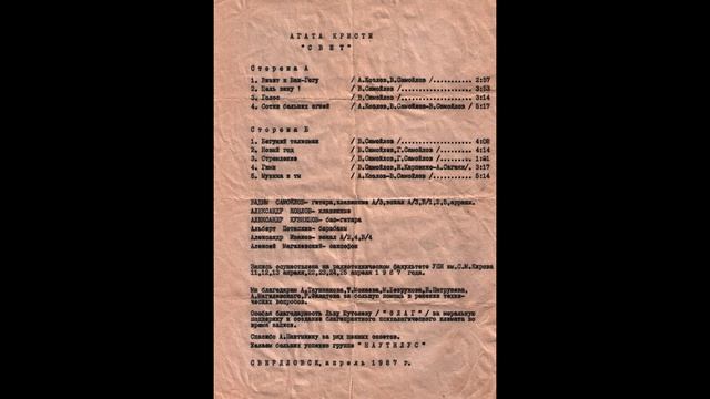 Агата Кристи(ВИА РТФ УПИ) самиздат Свет 1987