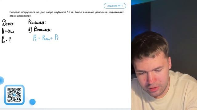 Водолаз погрузился на дно озера глубиной 15 м. Какое внешнее давление испытывает его - №22035