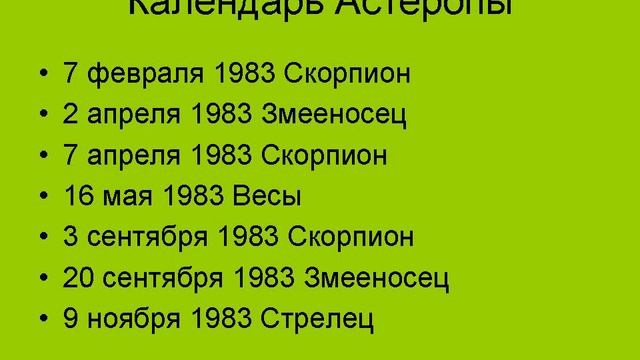 Календарь планеты Астеропа