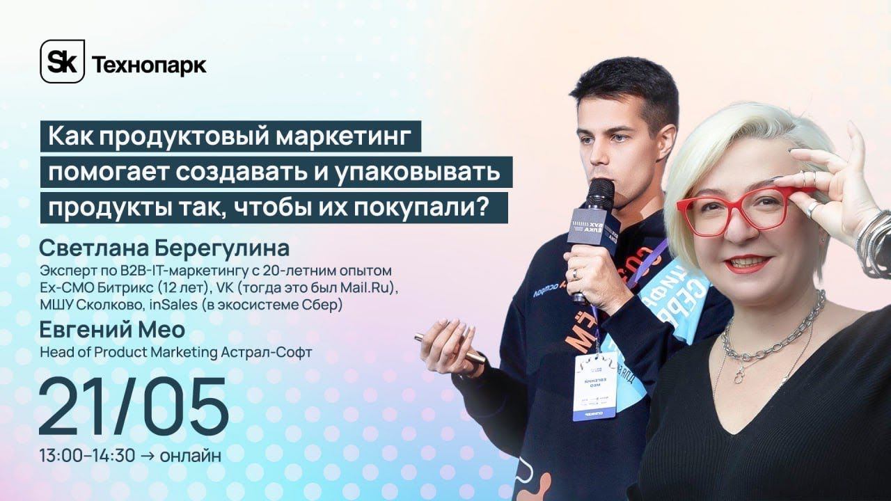 Количество вакансий продакт-менеджеров в сервисе hh составляет 7 800, а количество вакансий продуктовых маркетологов - всего 1 300. Давайте разберемся - что это за специализация, каким компаниям нужны продуктовые маркетологи, как они могут помочь созданию и продажам продуктов. На вебинаре мы обсудим: - Как разделяется ответственность между продакт-менеджером и продуктовым маркетологом - Каким компаниям нужны продуктовые маркетологи, а каким - маркетологи с компетенциями продуктового маркетинга? - Что должен знать и уметь продуктовый маркетолог? - С чего начать развивать функцию продуктового маркетинга? - Метрики и оценки эффективности продуктового маркетинга Ведущие вебинара: эксперты в маркетинге ИТ-продуктов с опытом более 40 лет на двоих: Светлана Берегулина Эксперт по B2B-IT-маркетингу с 20-летним опытом Ex-CMO Битрикс (12 лет), VK (тогда это был Mail.Ru), МШУ Сколково, inSales (в экосистеме Сбер) Руководила командой 50 сотрудников отдела маркетинга на 4 территориях Написала книгу про IT-маркетинг Увеличили клиентскую базу на 150 000 B2B пользователей на занятом рынке Топ-100 лучших директоров по маркетингу рейтинга Коммерсант 2021 Евгений Мео Head of Product Marketing Астрал-Софт Создал с нуля отдел продуктового маркетинга в компании, убедив руководство в том, насколько это улучшит продажи Руководит 15 продуктовыми маркетологами Увеличили клиентскую базу на 150 000 B2B пользователей на занятом рынке