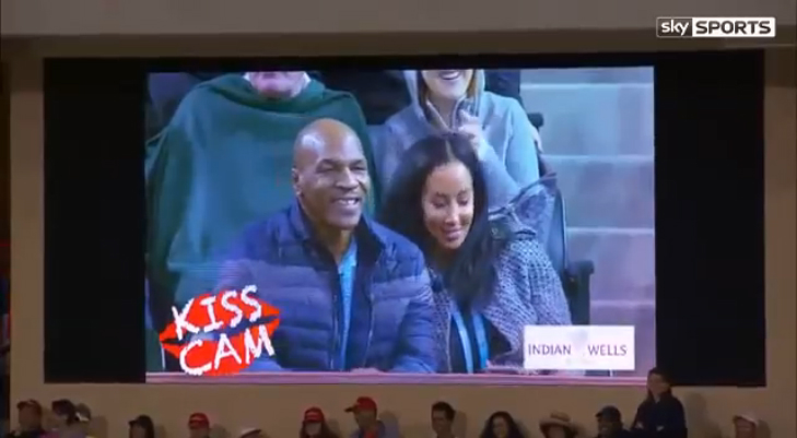 На теннисном турнире в американском Индиан-Уэллсе зрителям не давали скучать во время перерывов между играми, наводя на них объектив камеры Kiss Cam и заставляя их целоваться на публику. В одной из таких пауз в Kiss Cam попал знаменитый боксёр Майк Тайсон. Смутившись, он поцеловал свою жену, а затем закрыл лицо ладонью.