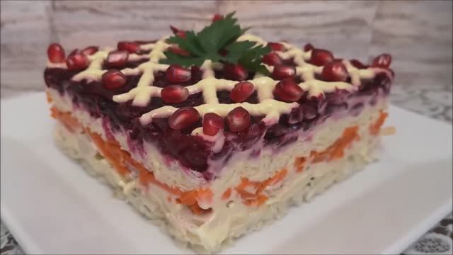 VK сообщество: https://vk.com/club225549357 ГОТОВИМ С ЛЮБОВЬЮ на Ютубе!!! https://www.youtube.com/@ГотовимсЛЮБОВЬЮ ГОТОВИМ С ЛЮБОВЬЮ RUTUBE: https://rutube.ru/channel/29858979/ Салат ГЕНЕРАЛ. Слоеный салат на праздничный стол. Вкусный салат .Быстрый рецепт 1 отварной картофель 150 гр отварного куриного филе соль,перец,домашний майонез 1 отварная морковь 70 гр сыра 1 зубок чеснока 1 отварная свекла для украшения зерна граната