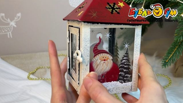 332751 Украшение новогоднее Фонарь с изображением Санта-Клауса и елок разноцветный 18см