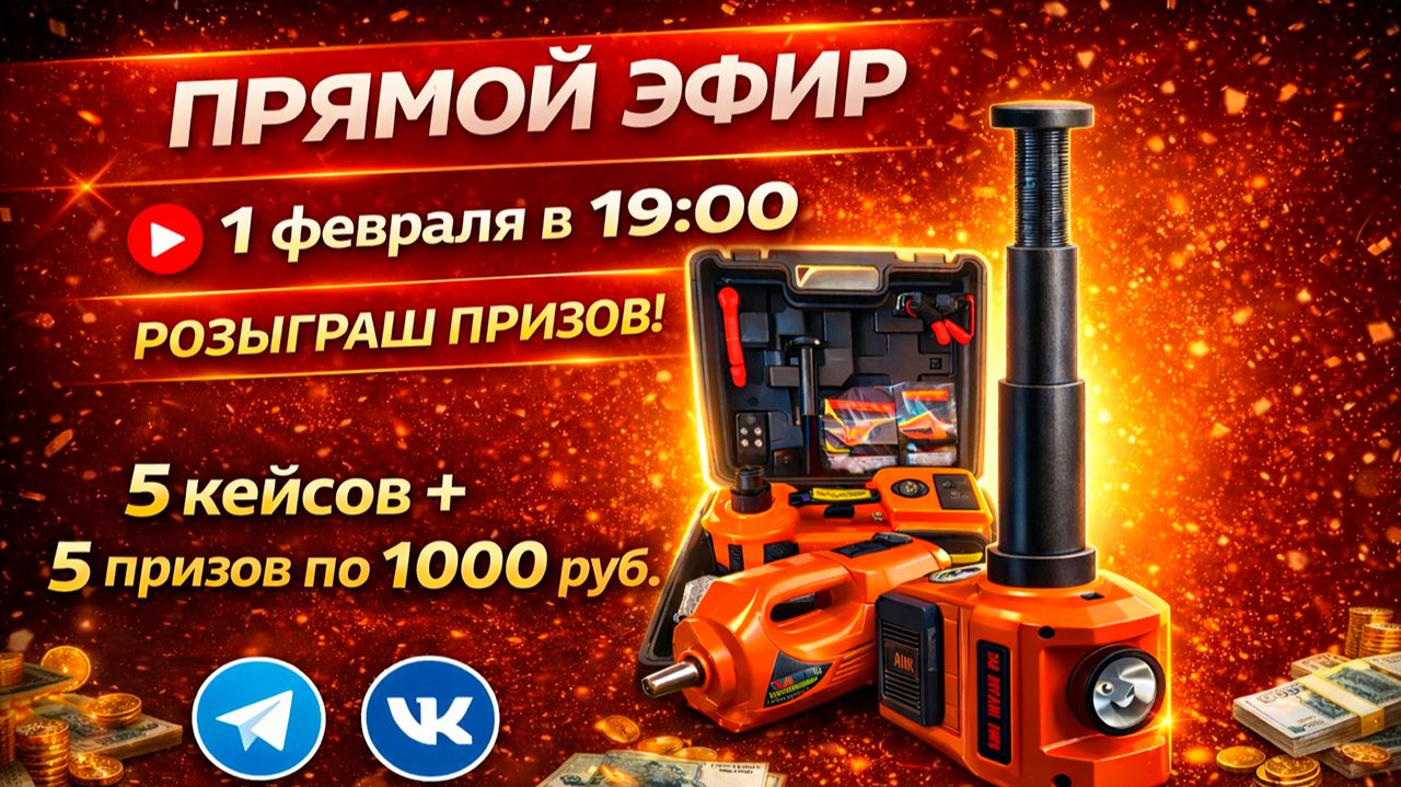Поздравляю всех победителей нашей акции. Денежные призы будут отправлены в течении 10 минут после завершения эфира. Автомобильные кейсы с домкратами и гайковёртами будут отправлены победителям транспортной компанией после того как получим от вас адрес доставки. Кто не успел принять участие в этом розыгрыше, не растраивайтесь скоро запустим новую акцию с автомобильными лебёдками 🔥