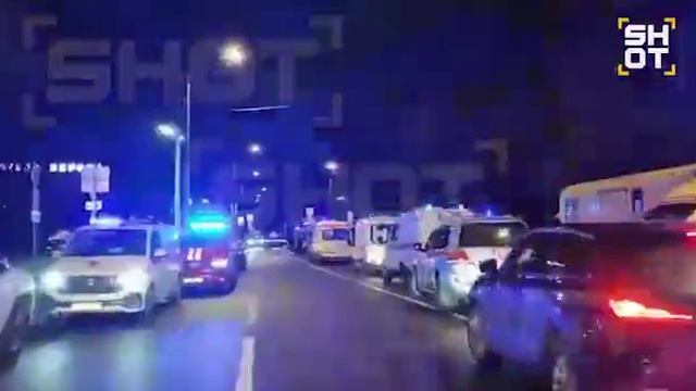 Десятки автомобилей скорой помощи и других служб находятся на подъезде к горящему дому в ЮЗАО