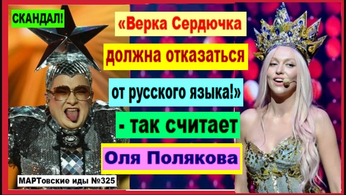 Оля Полякова прокомментировала ситуацию, когда Андрей Данилко на недавнем фестивале Лаймы Вайкуле "Рандеву" в Юрмале пел на русском языке, а также общался с журналистами и коллегами на великом и могучем. В программе «Ранок у великому місті» («Утро в большом городе») певица сказала, что и сама могла бы приехать в Юрмалу. Но тогда бы она общалась со всеми на английском языке. По крайней мере, она убеждала в этом журналистку утреннего шоу: "I can speak English without any problem" ("Я могу беспроблемно говорить по-английски"), передает Obozrevatel. Вопрос, почему Оля Полякова общалась бы в Латвии именно на английском языке, то есть на иностранном для жителей Прибалтики, так и остался без ответа. Видимо, она искренне считает, что там все «спикают». Как отметила певица, она свои русские песни уже перевела на украинский язык, а еще написала новые на украинском. «Я не понимаю, почему Андрей Данилко не украинизирует свои песни?» - вопрошает Оля Полякова. Такова тема сегодняшнего выпуска новостей в рамках постоянной рубрики "МАРТовские иды №324". Как всегда, ждём комментарии! См. видео!