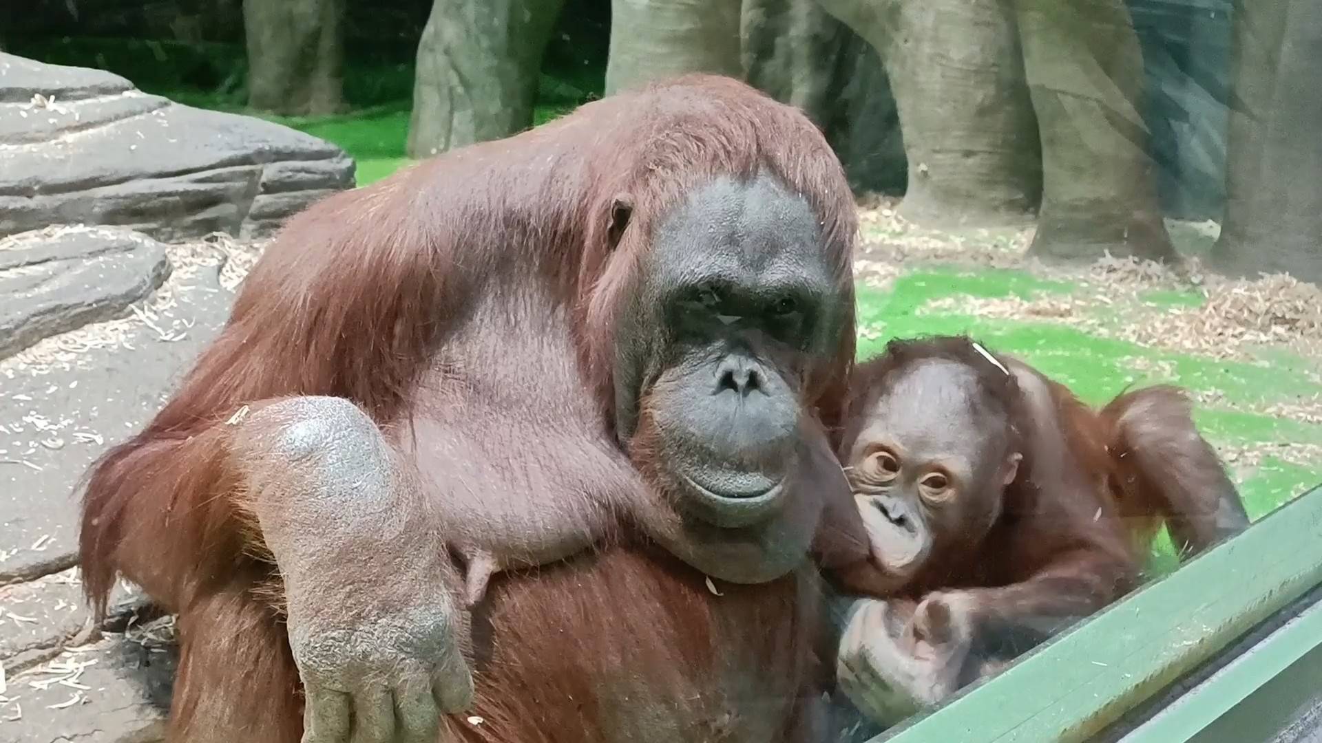 Борнейские орангутаны мама Личана с сыночком Джелаем.