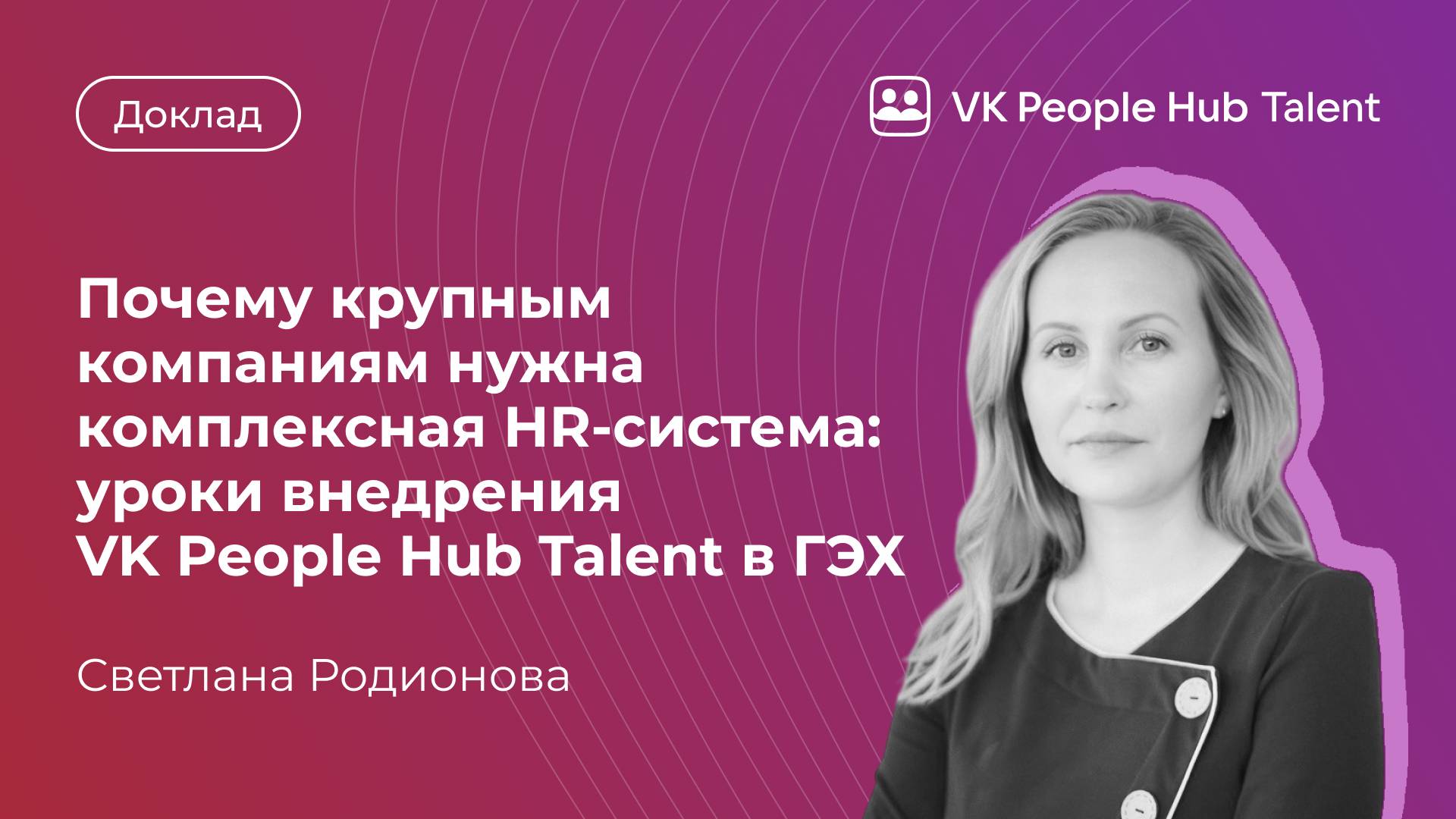 2 апреля 2025 года в рамках Глобального Всероссийского HR-Форума Персонал Экспо Светлана Родионова, Директор по развитию продукта VK People Hub Talent, представила доклад и поделилась HR-инсайтами: Почему крупным компаниям нужна комплексная HR-система: уроки внедрения VK People Hub Talent в ГЭХ («Газпром энергохолдинг»). В ходе выступления было рассмотрено, как разрозненные HR-системы замедляют развитие бизнеса, какую роль играет единая точка доступа в управлении персоналом и каким образом аналитика помогает принимать стратегические решения. Подробнее о VK People Hub Talent: https://goodt.me/talent/ Теги: #talentmanagement #адаптацияперсонала #удержаниеперсонала #vkpeoplehubtalent #hr #управлениеперсоналом #автоматизацияhr