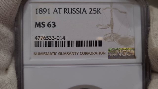 25 копеек 1891 АГ в слабе NGC MS63