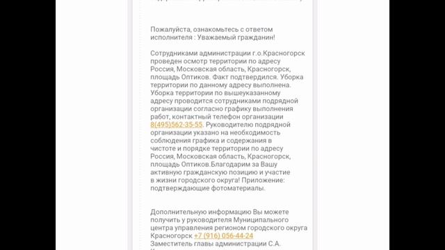 Всем добрый вечер. Пришёл ответ с сайта Добродел, что не соответствует действительности - по этой причине один пришлось отменить, второй нет возможности проверить в данный момент - по этой причине видимо придется принять автоматически. В этот раз мне не пришло подтверждение, что ответ готов. Увидела его только когда специально зашла на сайт, видимо делается для того, чтобы прошло время и не было возможности поставить - НЕ СООТВЕТСТВУЕТ действительности. По этой причине я самостоятельно мониторю ежедневно данные сайты. Листва заполонила весь город и когда ветер, то весь этот мусор летит вам в лицо, в глаза, в нос - а значит и в лёгкие. Напоминаю, что денежные средства, то есть ЗАРПЛАТУ никто у данных сотрудников не отменял и она у них не сдельная ( то есть по факту - договор), а они все оформлены официально и по трудовой, как я понимаю. Желаю нам всем чистого города. P.S. а если снова найдутся желающие написать, что можно пережить этот момент - и не обращать внимания, то желаю вам встретиться с врачом, что вам скажет - например - аналогично - ...по какой причине вы данную работу готовы защищать, а как только вопрос к другим специалистам - то у вас претензий воз - врач, пожарный, пилот, водитель...и так далее. Изучайте пожалуйста не только ваши обязанности, но и ваши ПРАВА! #2023 #россия #красногорск #город #дом #ответ #отчет #информация