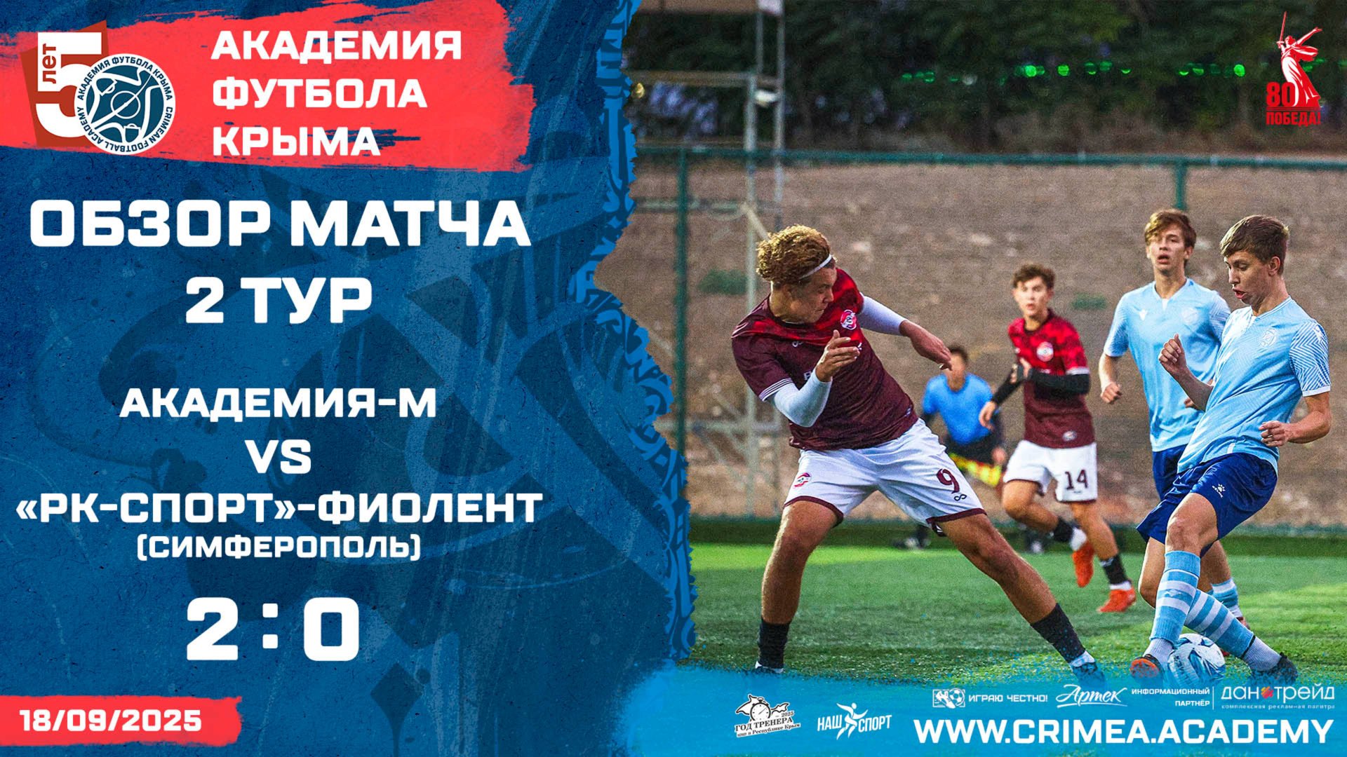 Обзор матча второго тура Открытого первенства детско-юношеской футбольной лиги Крыма среди юношей 2008-2009 гг.р.(2025/2026): Академия футбола Крыма"-М - ДФШ "РК-Спорт"-Фиолент (Симферополь) Наш сайт: https://www.crimea.academy/ Академия футбола Крыма – это большая футбольная семья, которая открыта для общественности и готова к взаимному сотрудничеству, обмену опытом и профессиональному общению. Наша цель – подготовка качественных и конкурентоспособных футболистов с учетом современных требований, а также образованных и всесторонне развитых членов современного общества. Наша приоритетная задача – отбор детей, проявивших выдающиеся способности в области футбола для совершенствования их спортивного мастерства. Команды Академии ориентированы на атакующий и зрелищный футбол, в котором удовольствие получает не только сам игрок, но и зритель. При этом интересы команды не должны идти в ущерб задаче воспитания отдельного футболиста. В основе воспитания юных футболистов в нашей Академии лежит принцип – "подготовка игрока, а не команды". #футбол #спорт #СвернёмГоры #football #soccer #sport