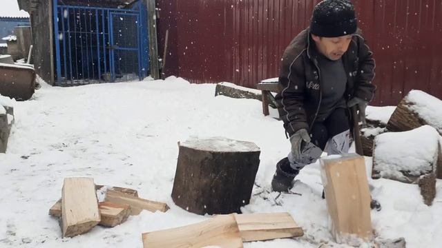 зима в деревне,чистим снег,рубим дрова