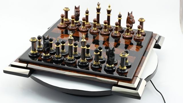 •Материал: обсидиан, бархат, бронза. •Техника исполнения: камнерезные работы, нанесение нитрида титана с помощью УВН (установка вакуумного напыление). •Размер доски 395*395*40мм, размер клетки 37*37мм, размер игрового поля 300*300мм, размер пешки 32*32*44мм, размер короля 32*32*87мм. •Вес в упаковке: 8,6кг. •Упаковка: подарочный ящик из дерева, размер 450*450*100мм. •Изделие в наличии при заказе вы получите образец, который представлен на фотографии. https://radugakamnya.ru/catalog/suveniry_iz_kamnya/suveniry_iz_obsidiana/shakhmaty_i_nardy_iz_obsidiana/shakhmaty_iz_obsidiana_395_395_40mm_v_podarochnoy_upakovke_2-619285/