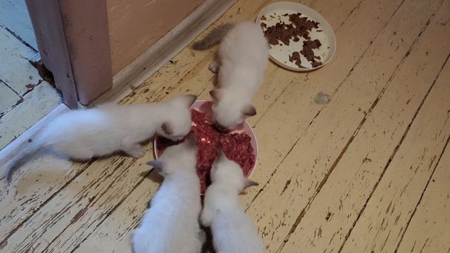 Котята уже хорошо едят из миски