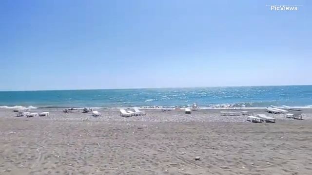 Абхазия пляж сегодня 9 июня 2025. Обстановка на пляже море и погода. Пляж пансионата Сосновая роща