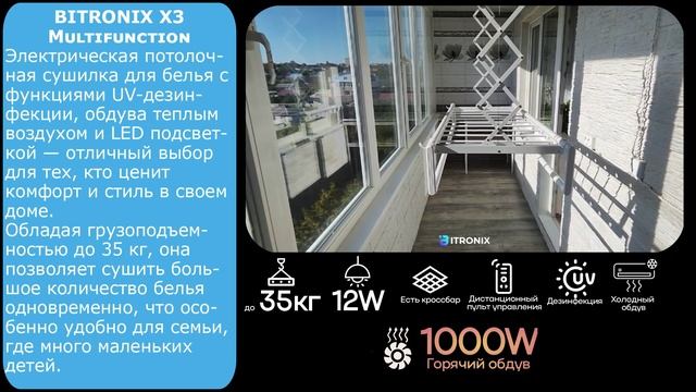 BITRONIX — умная потолочная сушилка для балкона, лоджии и не только Преобразите балкон в аккуратную, функциональную и эстетичную зону — техника, которая бережёт время и пространство, оставаясь незаметной в интерьере. Почему выбирают BITRONIX - Быстрый и бережный цикл сушки Умные режимы сокращают время высыхания и освобождают место в квартире — никаких стеллажей и загромождённого пространства. - Строгий, универсальный дизайн Лаконичная форма и нейтральные линии — подходит под любой стиль лоджии или балкона, ничего лишнего в вашем пространстве. - Грузоподъёмность 35 кг Одно устройство справится с постельным бельём, пледами, одеялами и тяжёлыми куртками — универсальность для всей семьи. - Ультрафиолетовая дезинфекция Дополнительный уровень гигиены: уменьшает количество бактерий и устраняет неприятные запахи, обеспечивая чистоту вещей. - Обдув тёплым воздухом Равномерная, щадящая сушка — без пересушивания и заломов ткани. - Пульт дистанционного управления Все функции под рукой: подъём/опускание, выбор режимов сушки и дезинфекции — удобно управлять одной кнопкой. - Официальная гарантия и сервис Профессиональная поддержка и сервисное обслуживание для спокойствия и надёжной эксплуатации. - Доставка от 1 дня Быстрая поставка и оперативная установка — техника у вас почти сразу после заказа. BITRONIX — экономия места, времени и нервов Эстетика и продуманная функциональность в каждом элементе. Узнайте подробнее и оформите доставку — превратите балкон в помощника вашего дома. Контакты: 8 800 301 35 11 +7 967 979 31 50 WhatsApp/TG Rutube канал: https://rutube.ru/channel/51133044/ Яндекс Дзен : https://dzen.ru/bitronix Группа ВКонтакте: https://vk.com/bitronixdryer YouTube канал: https://youtube.com/@bitronixbitronix #BITRONIX #битроникс #умнаясушилкадлябелья #сушилкапотолочнаяэлектрическая #сушилкадлябельяпотолочнаяэлектрическая #сушилкаспультом #умнаясушилкадлябельяxiaomimijia #сушилкадлябельяxiaomiclothes #сушилкидлябельяспультом #сушилкадлябельясэлектроприводом #сушилкадлябельясфункциейобогрева #потолочнаясушилкаспультом #сушилкадлябельяпотолочнаяспультом #сушилкидлябельяsenspa #сушилкадлябельясяоми #сушилкадлябельясвентилятором #сушильныйшкафдляодежды #стиральносушильнаямашина #сушилкадлябельяпотолочная #сушилкадлябельянабалкон #сушилкадлябельяпотолочнаянабалкон #сушилкадлябельявванную #сушилкадлябельянапольная #сушилкадлябельянастенная #ophiroc #foxidry #xiaomi #сушилкадлябелья #умнаясушка #smatrсушилкадлябелья #smartdryer #xiaomimijia #senspamarmi #сушкадлябельяпотолочная #сушкадлябелья #сушкадлябельянапольная #сушилкадлябельяопускающаяся #smartсушилкадлябелья #сушильнаямашина #электрическаяcушилка #сушилкавкомнате #сушилканабалкон #тренд2025 #тренд #сушилканапольная #сушилканастенная #сушилкавванную #ремонтванной #ремонтквартир #дизайнквартиры #дизайнванной #ремонтбалкона #ремонтбалконовилоджий #ремонтбалконов