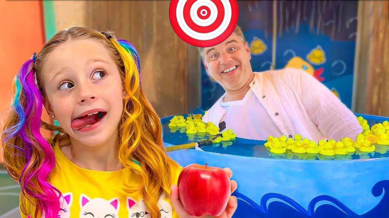 Настя и папа в парке аттракционов Страна легенд Land of Legends