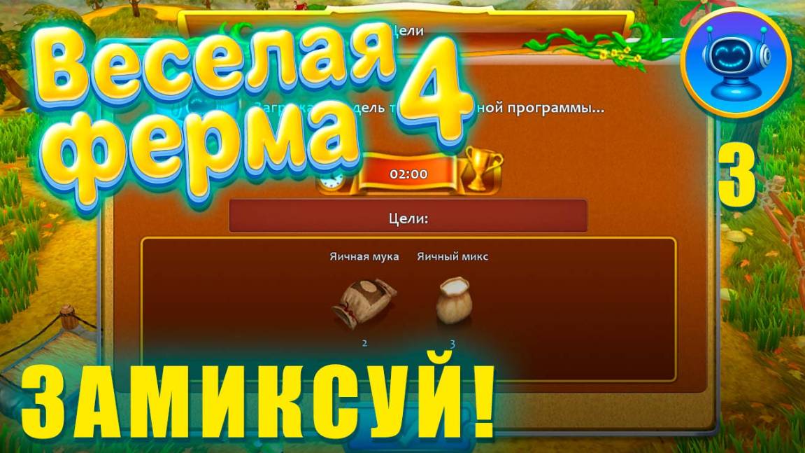 Выполняем третий уровень игры, где нужно собрать ресурсы и выполнить цель – сделать 2 яичной муки, и 3 яичных микса. Автор показывает, как быстро выполнить задание на ЗОЛОТО!