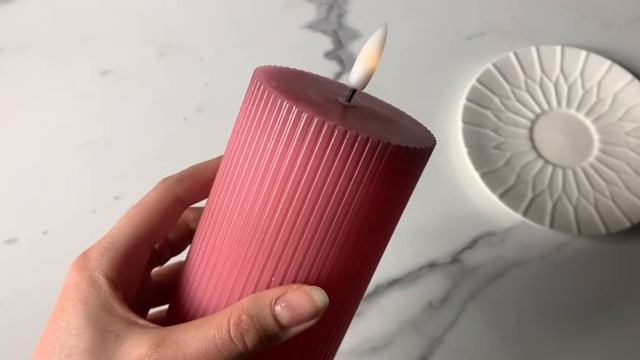 Свеча-столбик светодиодная восковая РИФЛИ, пыльная роза, мерцающий огонёк, MB-41146