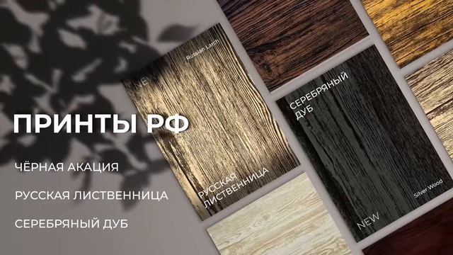 Расширение цветовой палитры покрытий ПРИНТЫ РФ Представляем вашему вниманию сразу два новых цвета из серии полимерных покрытий отечественного производства: Серебряный дуб (Silver Wood) и Русская лиственница (Russian larch).