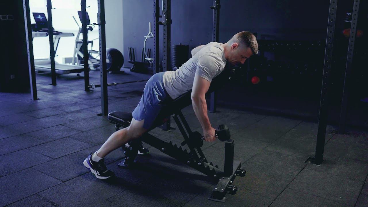 Попеременная тяга гантелей на наклонной скамье с удержанием/ Alternative incline DB row and hold