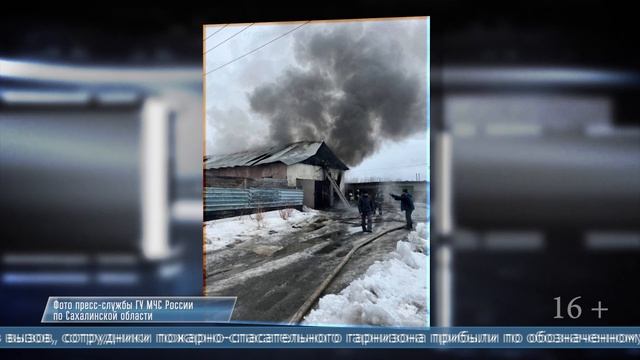 31.03.2025 В Поронайске 3,5 часа тушили здание, в котором расположены гаражи