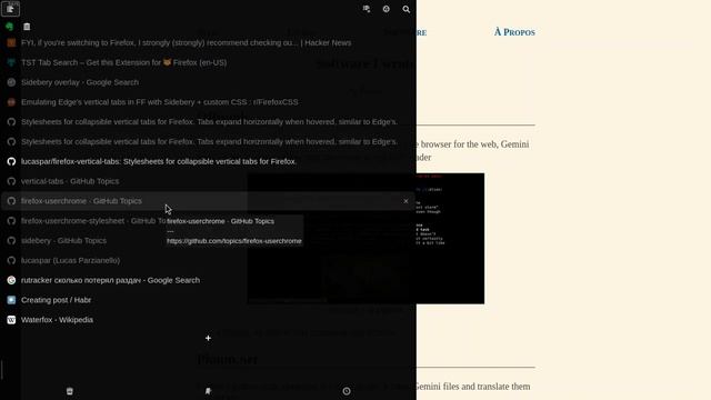 Extension https://github.com/mbnuqw/sidebery plus https://github.com/lucaspar/firefox-vertical-tabs