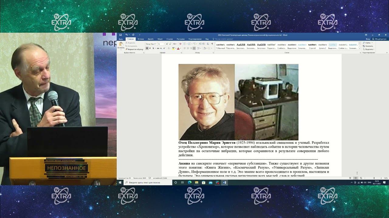 Телепортация и путешествия во времени возможны с помощью различных техник и явлений, и есть доказательства, свидетельствующие об их существовании. 00:00 Телепортация и путешествия во времени могут быть достигнуты с помощью ментальной виртуальной телепортации и физической телепортации, при этом пророки, ясновидящие и специалисты используют такие техники, как сновидения, регрессионный гипноз и остаточные вибрации для доступа к информации из прошлого и будущего. 08:58 Универсальная база данных знаний регистрирует все мысли, слова и действия, включая книги о путешествиях во времени и пространстве, в то время как экстрасенс ЦРУ делится своим опытом и методами дистанционного видения, но ограничивается событиями далекого или прошлого. 13:34 Хронометраж небесных сражений с открытием порталов, сопровождающихся визуальными и слуховыми явлениями, можно наблюдать в России, где время может ускоряться или замедляться в зависимости от плотности эфира, как объясняют эксперименты Косарева Николая Александровича и Альберта Иосифовича Минских с машиной времени. 18:50 ️ Путешествия во времени через порталы возможны благодаря способности перемещать предметы и людей, а временем можно манипулировать с помощью ментальных состояний и аномальных зон. 23:35 Обсуждаются телепортация и путешествия во времени, математические теории, объясняющие, как они работают, различные конструкции порталов, связанные с такими явлениями, как НЛО и снежный человек, а также примеры исчезновения людей и материализации объектов из воздуха. 31:51 Существуют свидетельства, указывающие на возможность телепортации объектов и путешествий во времени, в качестве примеров можно привести исчезновение ребенка женщины и его повторное появление годы спустя, а также самолет, исчезающий с радаров на 10 минут, но приземляющийся с опозданием пассажиров на 10 минут. 35:38 Объекты телепортировались сквозь стены и обратно в 1980 году, как показано в фильме ЦРУ, и были интересные снимки, сделанные в аномальной зоне, демонстрирующие эффект флуктуации в определенных зонах пространства, в то время как докладчик также обсуждает книги о путешествиях во времени, телепортации и структуре пространства и времени, которые можно скачать бесплатно и спрашивает об управлении информацией после телепортации. 41:51 Будьте осторожны с порталами и обратитесь за помощью к космическому разуму, если у вас есть Вера; обращайте внимание на необычный туман и избегайте резких движений, если оказались в неподходящем месте в неподходящее время; найти ключ для выхода так же важно, как найти ключ для входа, чтобы не заблудиться во времени. ___ https://nepoznannoe.online/ - информация об интерактивной конференции Непознанное, участие для зрителей и спикеров по этой ссылке. https://t.me/nepoznannoe_online - подписывайтесь на телеграм канал о Непознанном