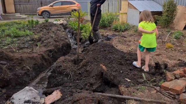 Прокапываем канализацию на болоте. Мой огород. Жизнь в деревне.