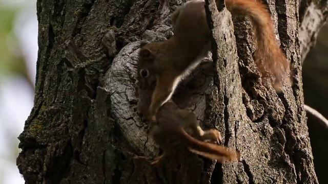 В видео запечатлено то, как маленький бельчонок выпал из дупла, но мама-белка заметила это раньше, чем ее малыш выпал окончательно. Она пытается поймать его, используя для этого всю силу маленьких лапок. Из-за того, что бельчонок ускользает из лап, она вынуждена постоянно крутить его, пытаясь вернуть в дупло. У неё никак не получается затащить его обратно в дом, поскольку при этом маленький бельчонок ещё и напуган, поэтому он постоянно меняет своё положение. Но вскоре белке удаётся сделать так, что бельчонок все-таки может зацепиться своими лапками за дерево, вот только возвращаться в дупло он совсем не хочет. Забавно наблюдать за тем, как малыш хочет продолжать исследовать мир, хотя его мама очень настойчиво пытается вернуть его домой. В конечном итоге мама-белка сдаётся, аккуратно берет своего малыша за шкирку и сбегает вниз по дереву. Бельчонок даже не понял, что ему грозила большая опасность.