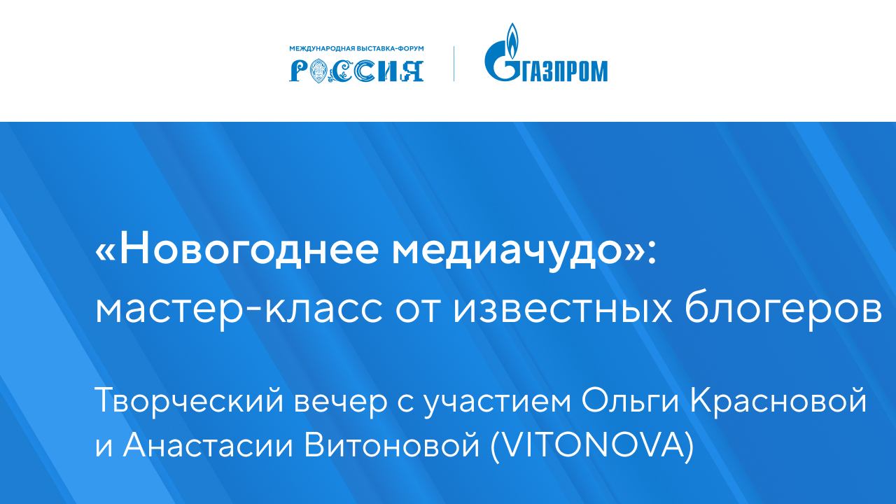 "Накануне Нового года в павильоне «Газпром» пройдет творческий вечер с участием резидентов продюсерского центра «Инсайт Люди». Творческий вечер с участием популярных блогеров станет частью новогодних праздничных мероприятий, организованных для гостей выставки в павильоне «Газпром». «Новогоднее медиачудо» пройдет с участием резидентов продюсерского центра «Инсайт Люди» – блогеров и певиц Оли Красновой и Анастасии Витоновой (VITONOVA). Гости мероприятия смогут встретиться с любимыми блогерами, сняться в их рилзах и узнать секреты создания вирусных видео. Откроет встречу видеосъемка на тему новогодних чудес. Затем в Лектории «Газпром» состоится премьера трека VITONOVA «Новогоднее чудо» и нового трека Оли Красновой, а также будет организован показ на большом экране рилзов, снятых в этот вечер. В конце встречи Анастасия и Оля проведут мастер-класс по съемкам популярных видео. "