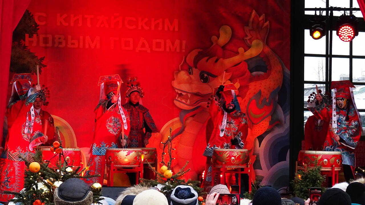 Китайский Новый год 2024 в центре Москвы на Тверской площади до 18 февраля 2024г. Событие посвящено 75-летию дипломатических отношений Китая и России. Площадь украсили в традиционном стиле китайского праздника: красные, китайские фонарики, надувные тигры и драконы. В кафе посетителям предлагают традиционную китайскую кухню. По программе проходят мероприятия с выступлениями артистов, драконов и львов. На необычном концерте китайские барабанщики показали свое первоклассное мастерство. Повсюду на посетителей устроены различные фотозоны, где можно сделать фото на фоне декораций и с костюмированными персонажами.