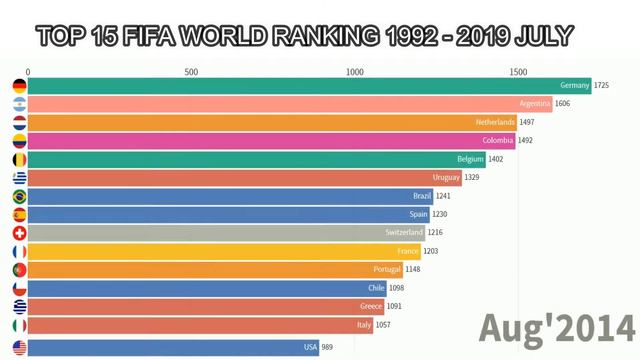 ⚽ Top 15 Countries of FIFA World Football Ranking from 1992 to 2019 / LATEST UPDATE