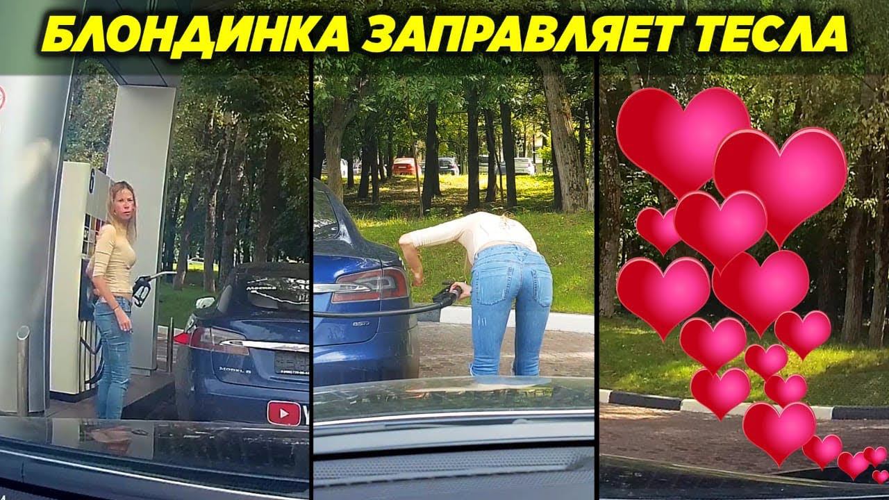 Блондинка заправляет Tesla. ПОСТАНОВА ВЕКА