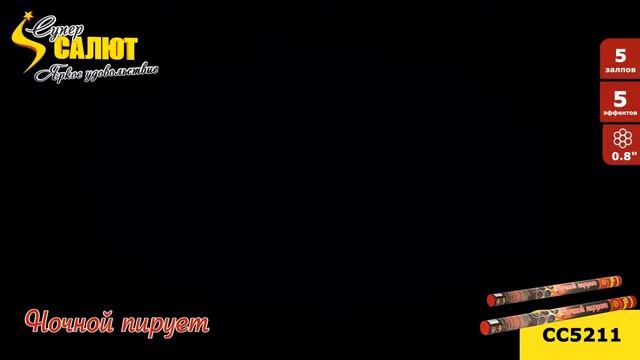 Римская свеча Ночной пируэт (5/0,8) СС5211 https://spb-salut.ru/products/nochnoy-piruet-5 Количество залпов/калибр: 5/0,8. Время работы до 25 сек. Высота подъема до 20 м. Эффекты: красная комета, переходящая в цветную хризантему; зеленая хризантема; серебряная комета, переходящая в серебряную мерцающую хризантему; красная комета, переходящая в серебряную хризантему с цветными жемчужинами; серебряная комета, переходящая в серебряную хризантему с синими жемчужинами. Фасовка: 1/24/4. SPB SALUT - пиротехническая компания в Санкт-Петербурге. Основные направления деятельности: 1) Розничная торговля пиротехникой (офлайн магазины, интернет-магазин spb-salut.ru); 2) Организация и проведение профессиональных фейерверков; 3) Оптовая торговля пиротехникой по всей России. Адреса магазинов: 1) г. Санкт-Петербург, ул. Тележная, д. 15, лит. Б (вход с ул. Кременчугская), м. Площадь Восстания. Ежедневно с 10:00 до 22:00 2) г. Санкт-Петербург, пр. Полюстровский, д. 28Б, м. Площадь Ленина. Ежедневно с 10:00 до 22:00 Благодаря большому опыту, наши специалисты с легкостью создадут для Вас уникальное фейерверк шоу, которое сделает любой Ваш праздник незабываемым, будь то день рождение, свадьба, корпоратив или фейерверк городского масштаба! Почта: info@spb-salut.ru Сайт: https://spb-salut.ru Тел.: +7(812)242-82-24; +7(952)287-80-85.
