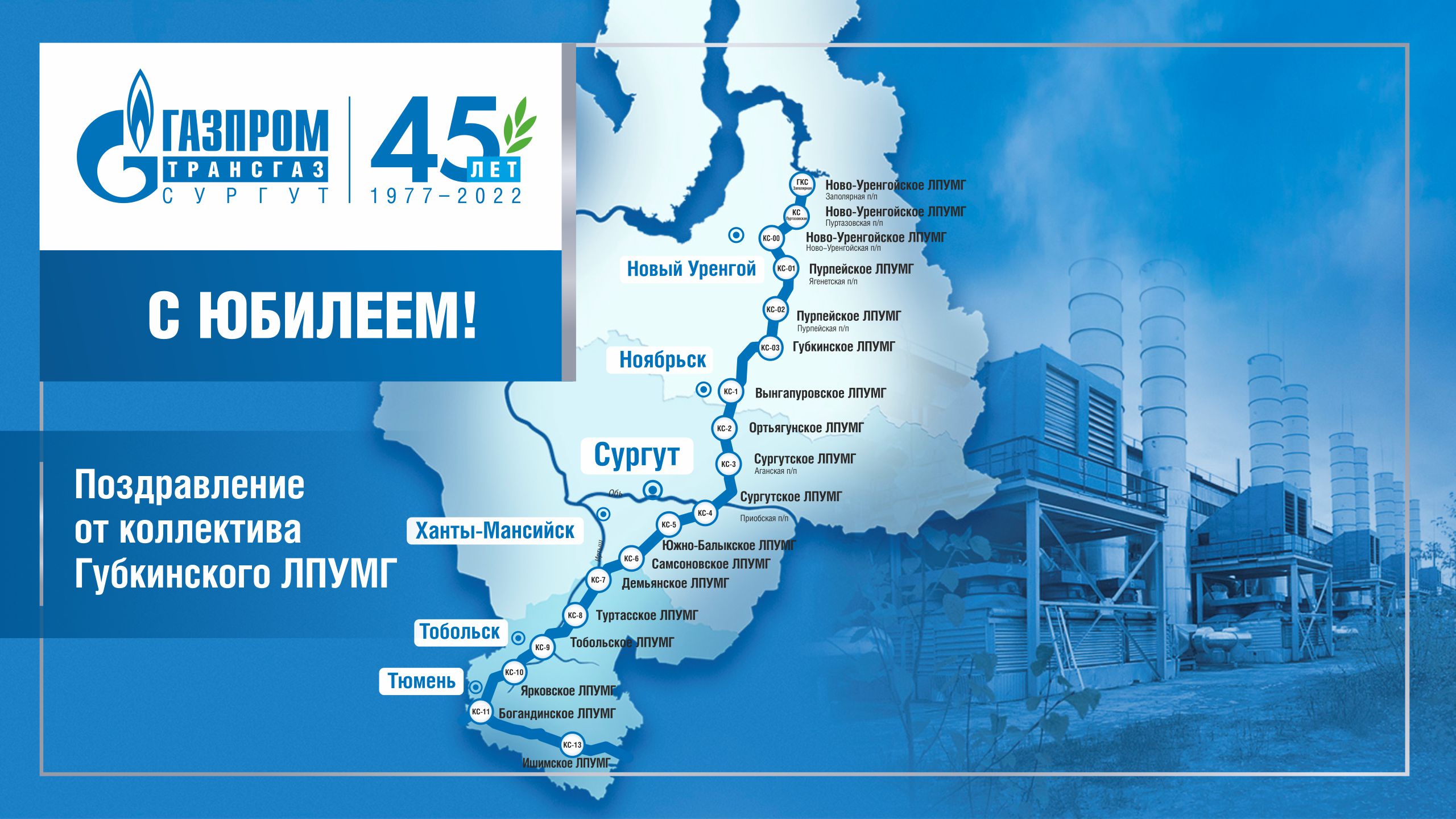 Поздравление с 45-летием предприятия от коллектива Губкинского ЛПУМГ