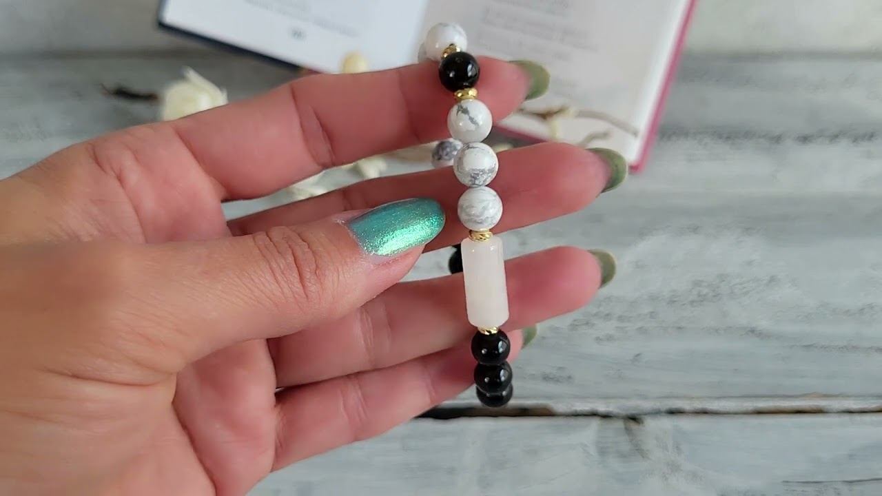 Браслет украшения из натуральных камней. Браслет из кахолонга, обсидиана радужного, горного хрусталя: обсидиан радужный шарик 8 мм., кахолонг шарик 8 мм., горный хрусталь цилиндр 8х16 мм., фурнитура люкс, длина 18 см. на резинке (на запястье 15-17 см.) купить украшения можно в нашем магазине https://www.livemaster.ru/samotsvety-ot-granat-mk?view=profile