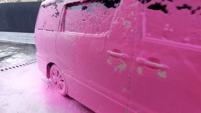 Розовая пена в Казахстане на мойке самообслуживания