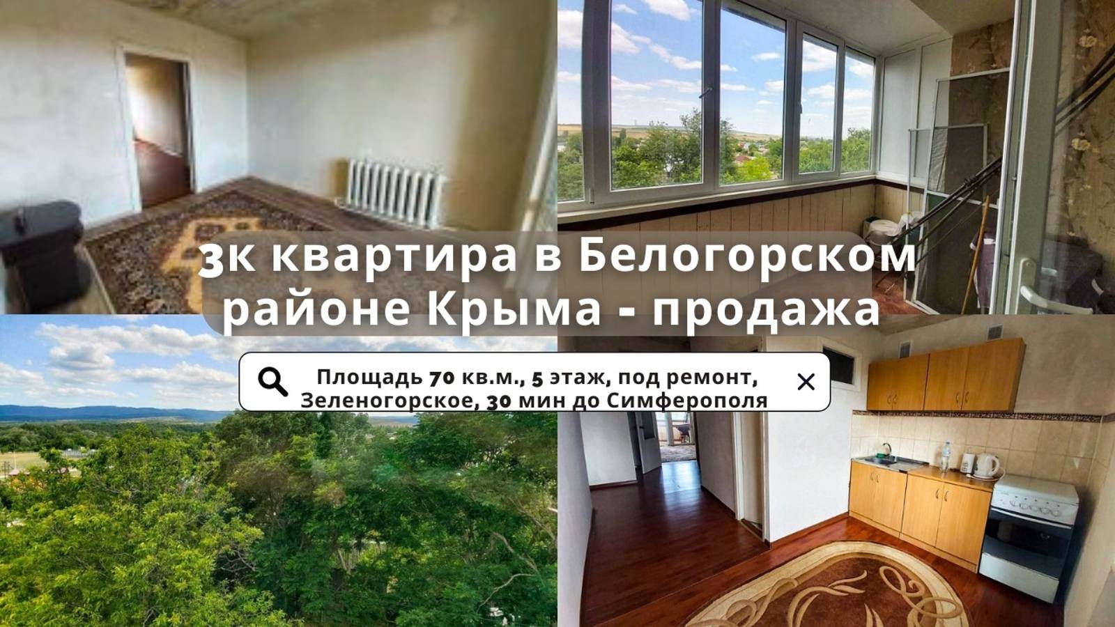 Продажа 3к квартиры в Белогорском районе Крыма Уютная 3-комнатная квартира в Зеленогорском — простор, свет и выгодное расположение! Продается светлая и просторная 3-комнатная квартира (70 м²) на 5 этаже 5-этажного дома в самом сердце села Зеленогорское. Квартира чешского проекта, все комнаты изолированные. Кухня: 7 кв.м. – Планировка: изолированные комнаты, большая лоджия + балкон, раздельный санузел. – Квартира под ремонт. – Окна: солнечные, хорошая инсоляция. – Дом: ухоженный подъезд, спокойные соседи. Квартира находится в центре села, в шаговой доступности всё необходимое: 2 продуктовых магазина, аптека; Детская площадка, аллея для прогулок; Спорт зона в 300 м: баскетбольная и спортивная площадки, стадион; Социальная инфраструктура: амбулатория, детский сад, новая школа (5 мин пешком); Парк и живописный ставок рядом; Строительные магазины, магазин автозапчастей. Отличная транспортная доступность: – 15 мин до г. Белогорска; – 30 мин до Симферополя; – 1 час до моря (в будущем — новая дорога сократит время); – Автобус ходит каждый час. Подходит под ипотеку, мат.капитал и жилищный сертификат. Документы РФ, готова к быстрой сделке. Идеальный вариант для жизни или инвестиций! Уютная 3-комнатная квартира в Зеленогорском — простор, свет и выгодное расположение! Продается светлая и просторная 3-комнатная квартира (70 м²) на 5 этаже 5-этажного дома в самом сердце села Зеленогорское. Квартира чешского проекта, все комнаты изолированные. Кухня: 7 кв.м. – Планировка: изолированные комнаты, большая лоджия + балкон, раздельный санузел. – Квартира под ремонт. – Окна: солнечные, хорошая инсоляция. – Дом: ухоженный подъезд, спокойные соседи. Квартира находится в центре села, в шаговой доступности всё необходимое: 2 продуктовых магазина, аптека; Детская площадка, аллея для прогулок; Спорт зона в 300 м: баскетбольная и спортивная площадки, стадион; Социальная инфраструктура: амбулатория, детский сад, новая школа (5 мин пешком); Парк и живописный ставок рядом; Строительные магазины, магазин автозапчастей. Отличная транспортная доступность: – 15 мин до г. Белогорска; – 30 мин до Симферополя; – 1 час до моря (в будущем — новая дорога сократит время); – Автобус ходит каждый час. Подходит под ипотеку, мат.капитал и жилищный сертификат. Документы РФ, готова к быстрой сделке. Идеальный вариант для жизни или инвестиций! Цена: https://xn--80adaksj8bbbq5h.xn--p1ai/prodazha-3k-kvartiry-v-belogorskom-rajone-kryma/ Адрес: Республика Крым, Белогорский р-н, Зеленогорское сельское поселение, с. Зеленогорское, ул. Ленина, 4 НАШИ КОНТАКТЫ: Телефон: +7 978 221 26 88 Уютная 3-комнатная квартира в Зеленогорском — простор, свет и выгодное расположение! Продается светлая и просторная 3-комнатная квартира (70 м²) на 5 этаже 5-этажного дома в самом сердце села Зеленогорское. Квартира чешского проекта, все комнаты изолированные. Кухня: 7 кв.м. – Планировка: изолированные комнаты, большая лоджия + балкон, раздельный санузел. – Квартира под ремонт. – Окна: солнечные, хорошая инсоляция. – Дом: ухоженный подъезд, спокойные соседи. Квартира находится в центре села, в шаговой доступности всё необходимое: 2 продуктовых магазина, аптека; Детская площадка, аллея для прогулок; Спорт зона в 300 м: баскетбольная и спортивная площадки, стадион; Социальная инфраструктура: амбулатория, детский сад, новая школа (5 мин пешком); Парк и живописный ставок рядом; Строительны