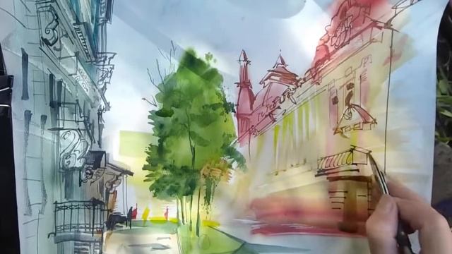Городская зарисовка Акварель UrbanSketch Watercolor DEMO (ускорено) 20.07.2022