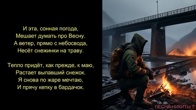 Весна. В апреле холодает, Как в подзабытом сентябре. А тучка в небесах летает, И стало сыро на дворе. И эта, сонная погода, Мешает думать про Весну. А ветер, прямо с небосвода, Несёт снежинки на траву. Тепло придёт, как прежде, к маю, Растает выпавший снежок. Я снова по жаре мечтаю, И прячу кепку в бардачок. Пока природа не проснулась, Она ещё не зацвела. Зима на север развернулась, И нет на улице тепла. Лучи куда-то растворились. А утром к нам придёт мороз. И стрелки на часах застыли, Считав о будущем прогноз. Весна. В апреле холодает, Как в подзабытом сентябре. А тучка в небесах летает, И стало сыро на дворе. Никита Т (2025)