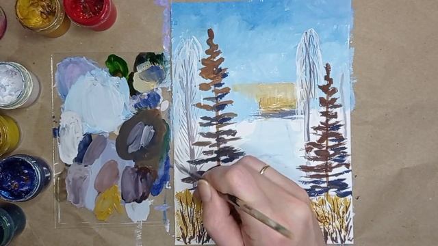 Рисование для начинающих | Солнечный зимний пейзаж