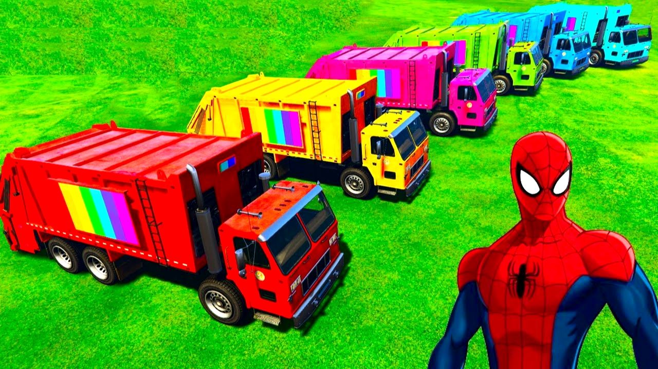 Грузовики Мусоровозы Человек-паук Мультфильм для детей и Супергерои для малышей Мультики про машинки