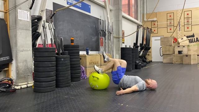 Сгибание голени лежа одной ногой на физиоболе
