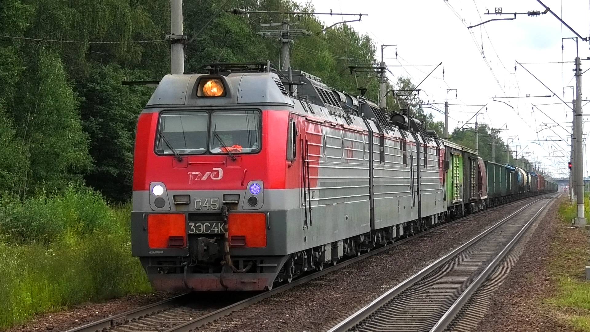 3ЭС4К-045 с грузовым поездом следует через о.п. 45 км