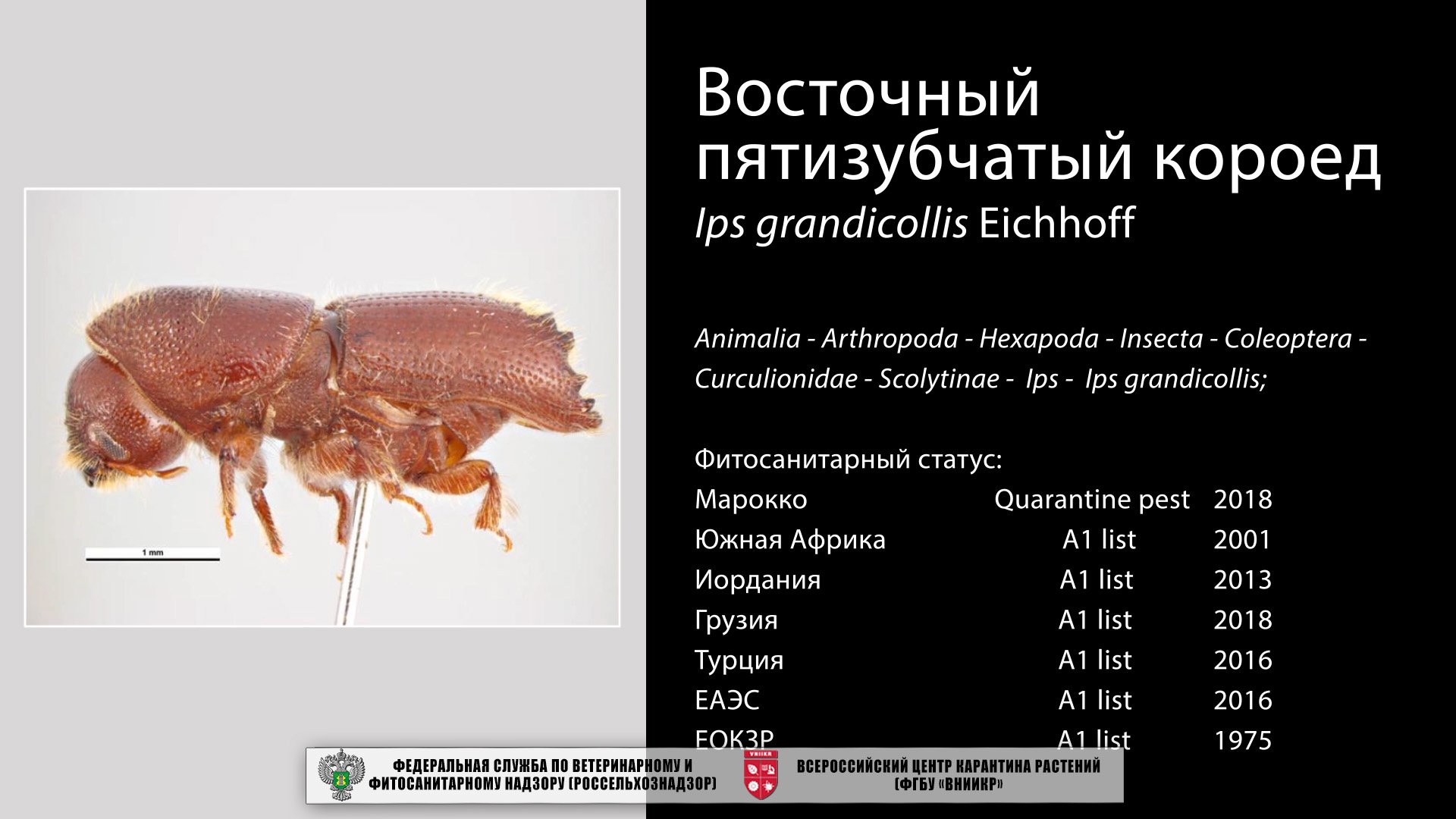 Восточный пятизубчатый короед (Ips grandicollis Eichhoff)